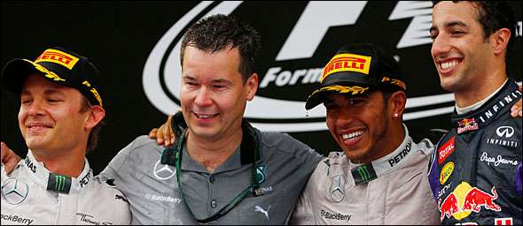 No entanto, Hamilton não deu qualquer hipótese de ultrapassagem a Rosberg e terminou a prova com apenas meio segundo de vantagem. Com este resultado, o piloto britânico ascendeu ao 1º lugar do Campeonato de Pilotos, por troca com o seu colega de equipa na Mercedes.