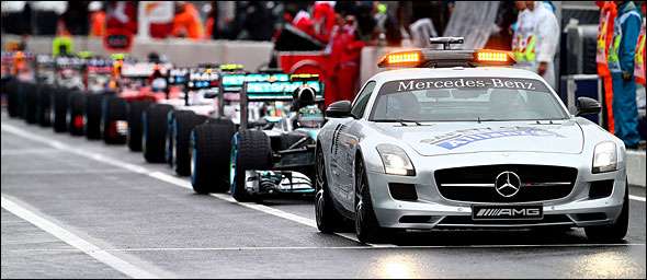 Após o acidente de Jules Bianchi, o Safety Car foi chamado a intervir em pista. No entanto, com o conhecimento da gravidade do estado de saúde do piloto francês, a corrida foi imediatamente interrompida com bandeiras vermelhas.