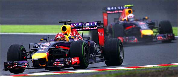 Atrás dos dois pilotos da Mercedes encontravam-se os dois Red Bull. Tendo apostado numa afinação para chuva durante a qualificação, os dois pilotos da formação de Milton Keyes conseguiram em Suzuka um resultado bastante positivo. Sebastian Vettel terminou a prova no lugar mais baixo do pódio, imediatamente à frente do seu colega de equipa Daniel Ricciardo.
