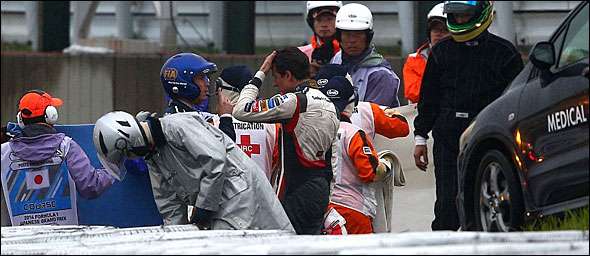 O piloto francês ficou inconsciente, tendo sido transportado de ambulância para o Hospital Universitário de Mie, onde foram diagnosticadas  graves lesões na cabeça. Bianchi foi sujeito a uma intervenção cirúrgica de emergência, encontrando-se actualmente nos Cuidados Intensivos, onde respira com a ajuda de um ventilador.