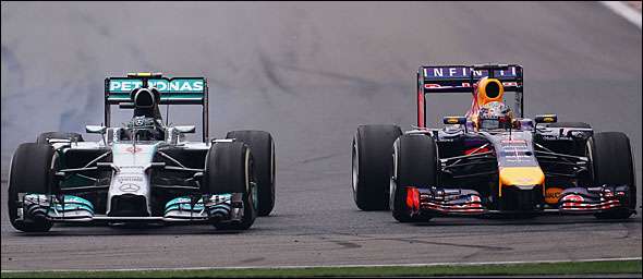 No seio da Red Bull, a polémica voltou a marcar presença. Apesar de Sebastien Vettel ter ascendido à 2ª posição no arranque, o piloto alemão estava mais lento que Alonso, Rosberg e Ricciardo. Este último seria responsável por mais uma ordem de equipa no seio da Red Bull: numa altura em que Ricciardo rodava mais rápido atrás de Vettel, a equipa deu a Vettel a indicação para deixar passar o piloto australiano.