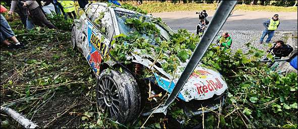 Na 2ª etapa, Robert Kubica iniciou o dia da melhor forma com uma vitória na 1ª classificativa. Os troços húmidos dificultaram as tarefas dos pilotos e nem o “regressado” Sébastien Ogier escapou incólume. Na 2ª classificativa do dia, Ogier teve uma saída de estrada a cerca de 200 km/h, encerrando definitivamente a sua participação no Rali da Alemanha.
