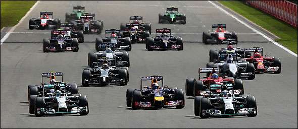 A sessão de qualificação de Sábado, marcada pela chuva que se fez sentir intermitentemente, veria Nico Rosberg conquistar a pole position perante o seu colega de equipa Lewis Hamilton. No entanto, o mau arranque do piloto germânico atiraria-o para a 3ª posição, atrás de Hamilton e Sebastien Vettel. O último viria a alcançar a liderança da prova, mesmo que apenas por alguns metros, quando logrou ultrapassar o piloto britânico da Mercedes. Apesar deste bom arranque, uma travagem mal calculada em Les Combes acabaria por atirar Vettel novamente para a 3ª posição.